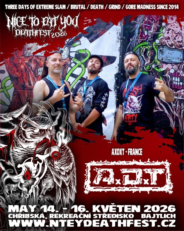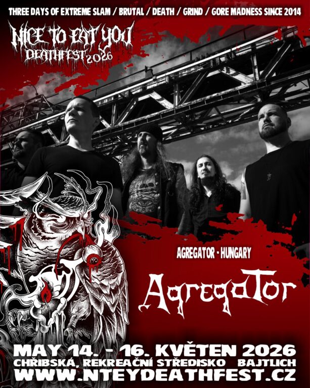 A jedeme na další bandy, dnes dvě, stylově totálně odjinud… Tou první jsou maďarští matadoři, kteří se nám představili už na jednom ročníku United in Brutality a svůj melodic death metal se snad až závany gotiky hrají už od roku 1997! AGREGATOR! A druhá banda k nám přifrčí z Francie a už podle názvu vás asi bude jasné, co že to hrají za styl – ano gore grind jako řemen, s heslem do prdele jazyk vrazit a nechat ho tam týden kazit! ASS DEEP TONGUED alias AxDxT! / And we’re going to see more bands, two today, totally out of the ordinary in terms of style… The first one is the Hungarian matadors, who introduced themselves to us at one year of United in Brutality and have been playing their melodic death metal with a touch of gothic since 1997! AGREGATOR! And the second band comes to us from France and from the name you’ll probably know what style they play – yes, gore grind as fuck, with the motto stick your tongue in your ass and let it spoil for a week! ASS DEEP TONGUED alias AxDxT!